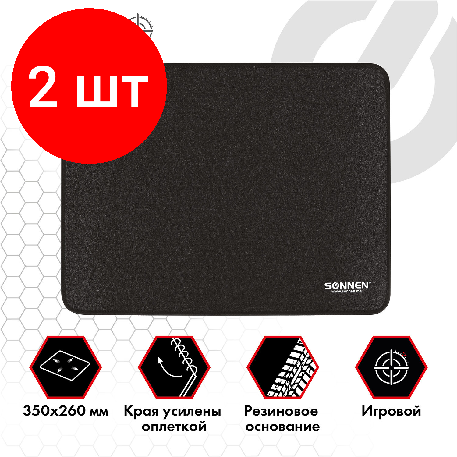 Комплект 2 шт, Коврик для мыши игровой SONNEN "ASSAULT", резина + ткань, 350х260х4 мм, 513303