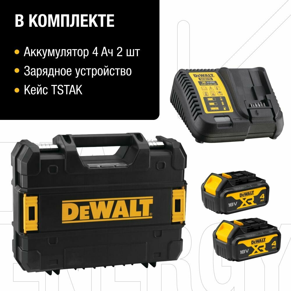Комплект ударная дрель-шуруповерт 18V, ЗУ, АКБ 18V 4.0 Ah 2шт, в кейсе TSTAK DEWALT DCD100YM2T