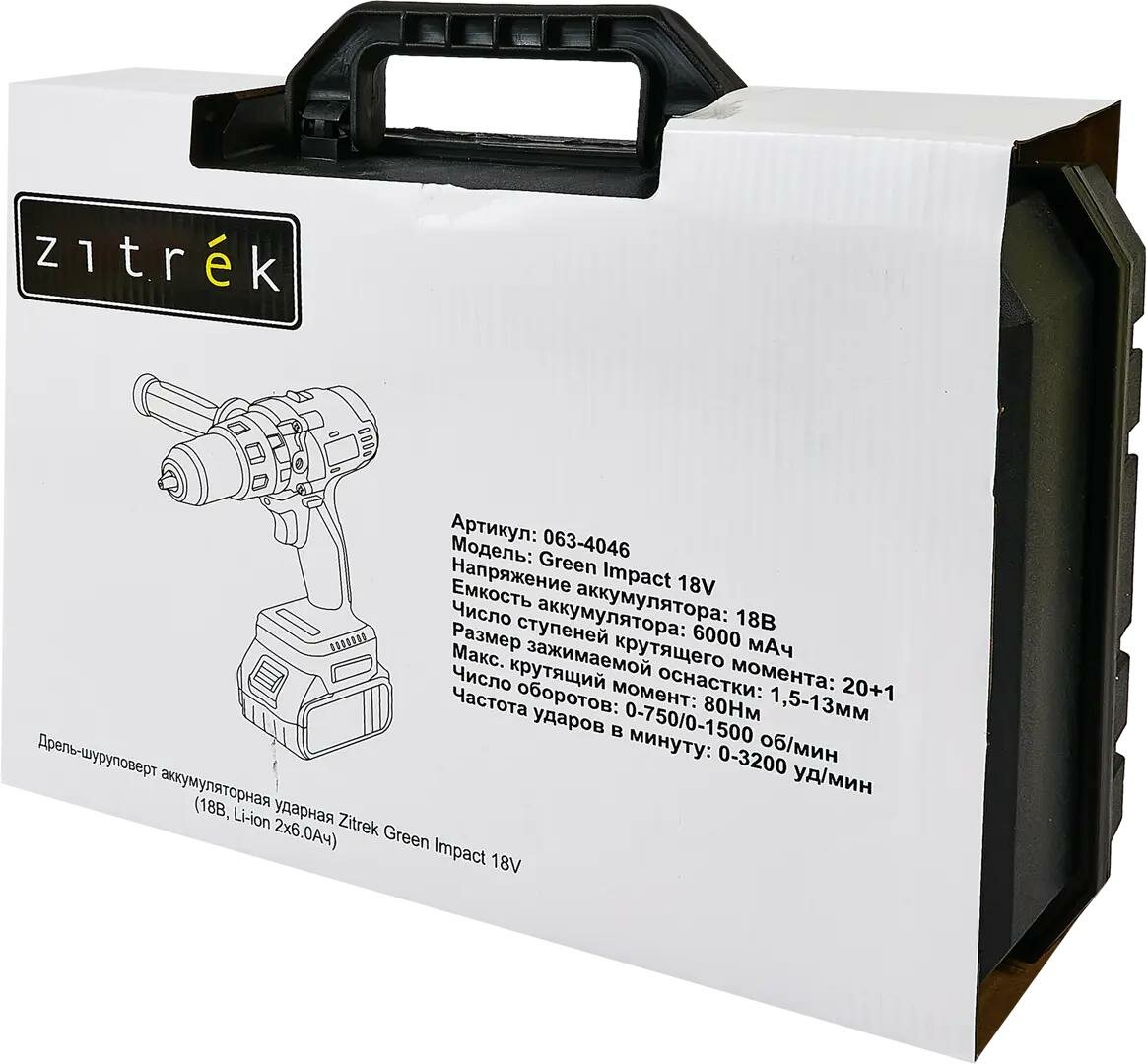 Дрель-шуруповерт аккумуляторная ударная Zitrek Green Impact 18V { 18В, Li-ion 2x6.0Ач }[063-4046]