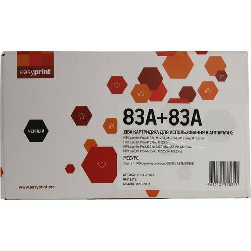 Комплект лазерных картриджей Easyprint LH-CF283AD (CF283A/83A/pro m125ra/CF283/NV/GP) для принтеров HP, черный