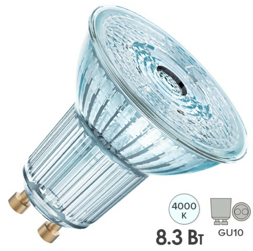 Лампа Светодиодная OSRAM 8.3W=80W 220V Софит PARATHOM GU10 PAR16 575Лм Диммируемая угол 36° 4000К Ra≥90 Дневной белый свет, уп. 5шт