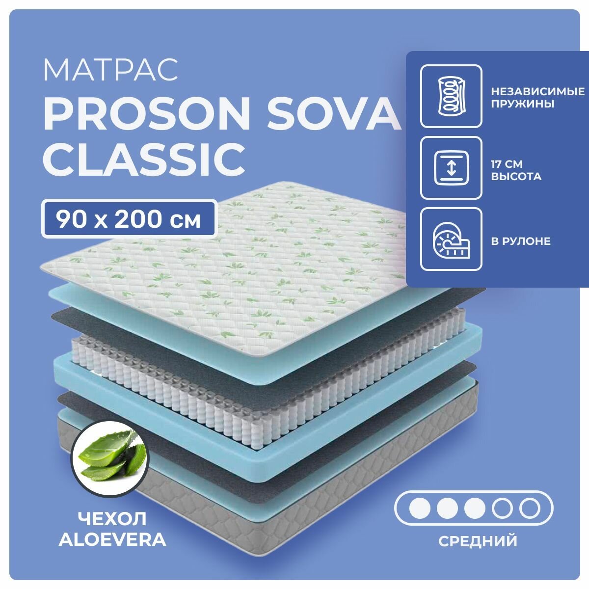 Матрас PROxSON SOVA Classic (Aloe Vera (100)/Mildex) средней жесткости 90x190