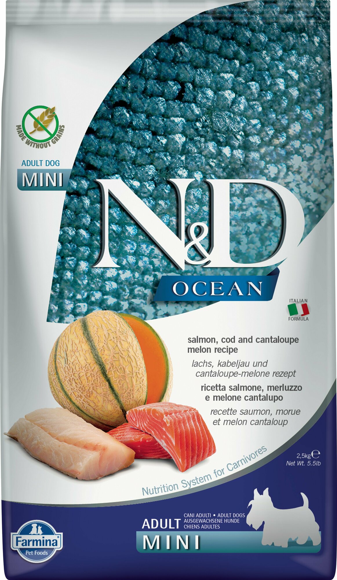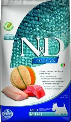Farmina N&D Ocean Dog Salmon, Codfish & Cantaloupe Melon Adult Mini сухой беззерновой корм для взрослых собак мелких пород с лососем, треской и дыней - 2,5 кг