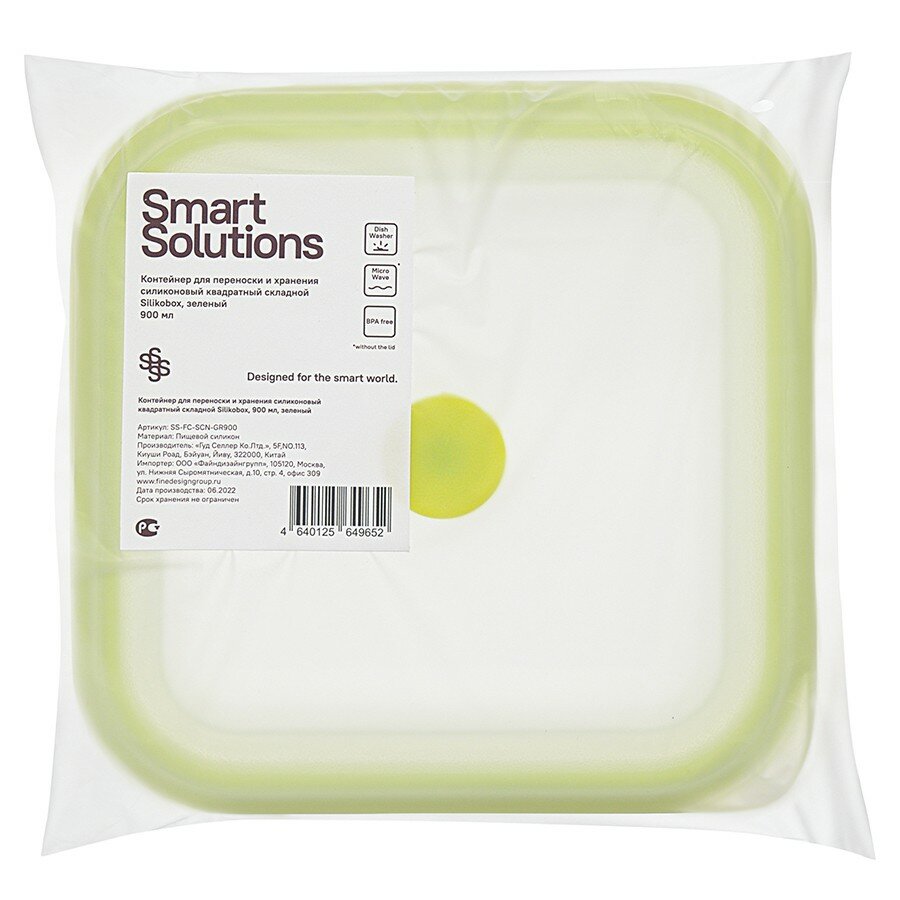 Контейнер для переноски и хранения Smart Solutions Silikobox силиконовый, квадратный, складной, 900 мл, зеленый SS-FC-SCN-GR900