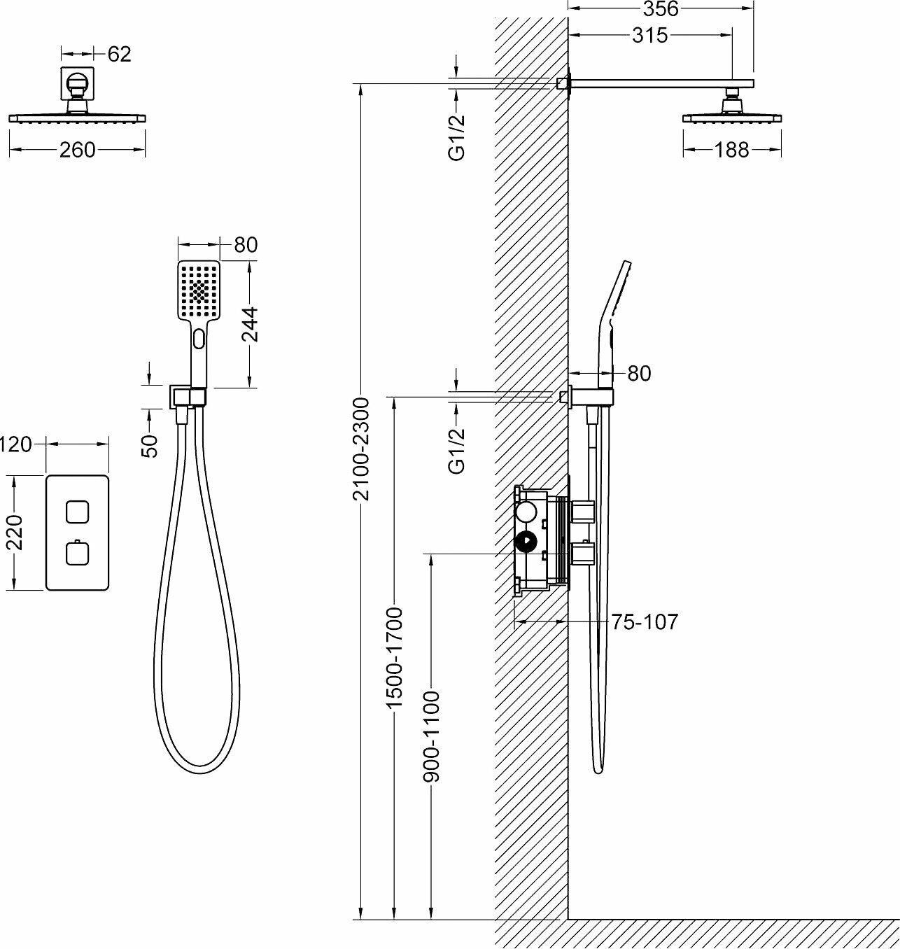 | Количество режимов верхнего душа | 1 |
