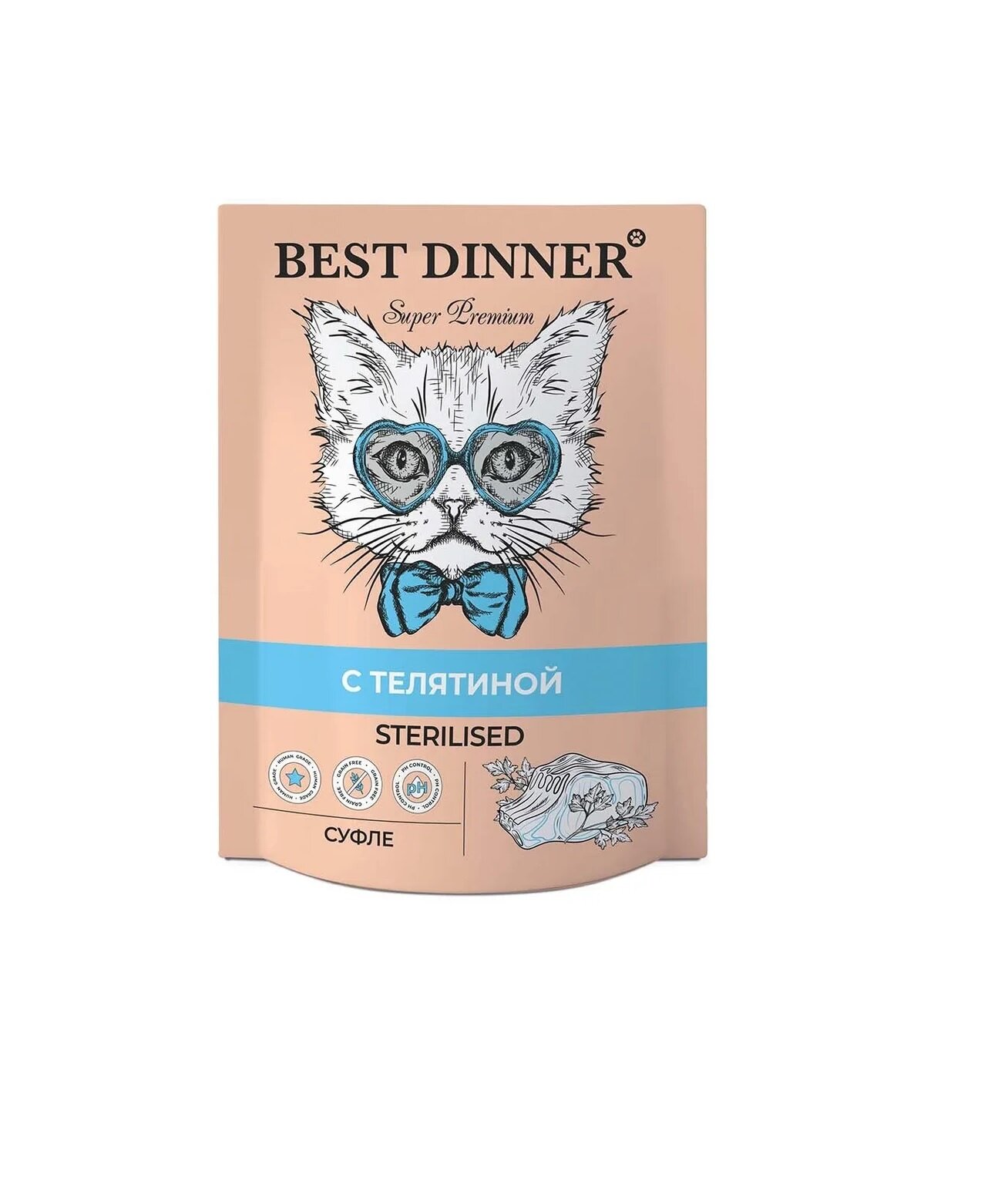 Влажный корм для кошек Best Dinner Бест Диннер Паучи Мясные деликатесы Sterilised /Суфле С Телятиной/ 85 г х 24 шт.