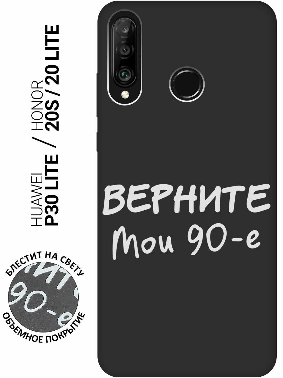 Купить Матовый Soft Touch силиконовый чехол на Honor 20 Lite, 20s, Huawei P30 Lite, Хуавей Хонор 20 Лайт с 3D принтом "The Nineties W" черный