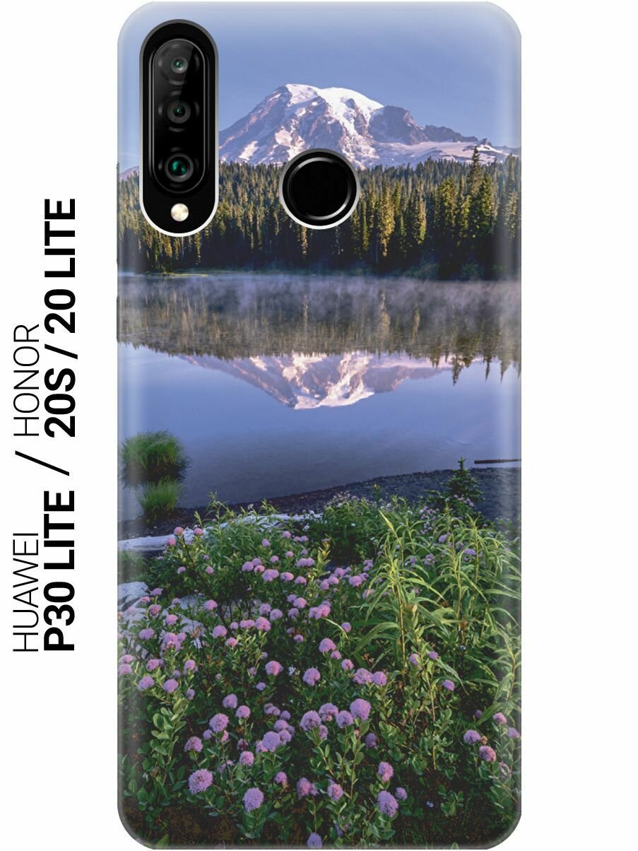Силиконовый чехол на Honor 20 Lite, 20s, Huawei P30 Lite, Хуавей П30 Лайт, Хонор 20 Лайт, 20s с принтом "Горы, озеро, облака"