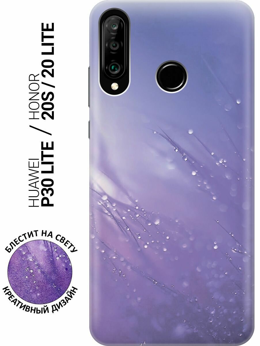 Купить Силиконовый чехол на Honor 20 Lite, 20s, Huawei P30 Lite, Хуавей П30 Лайт, Хонор 20 Лайт, 20s с эффектом блеска "Капли на синей траве"