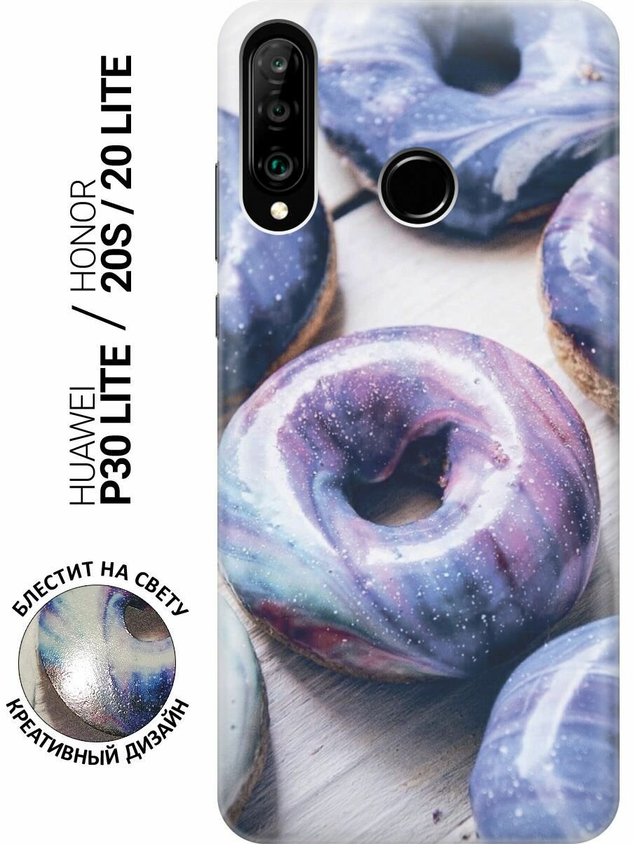 Купить Силиконовый чехол на Honor 20 Lite, 20s, Huawei P30 Lite, Хуавей П30 Лайт, Хонор 20 Лайт, 20s с эффектом блеска "Пончики в сиреневой глазури"