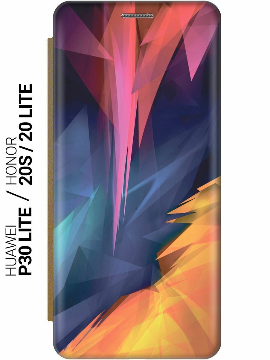 Чехол-книжка на Honor 20 Lite / 20s / Huawei P30 Lite / Хуавей П30 Лайт / Хонор 20 Лайт / 20s c принтом "Розовый, синий, желтый" золотистый