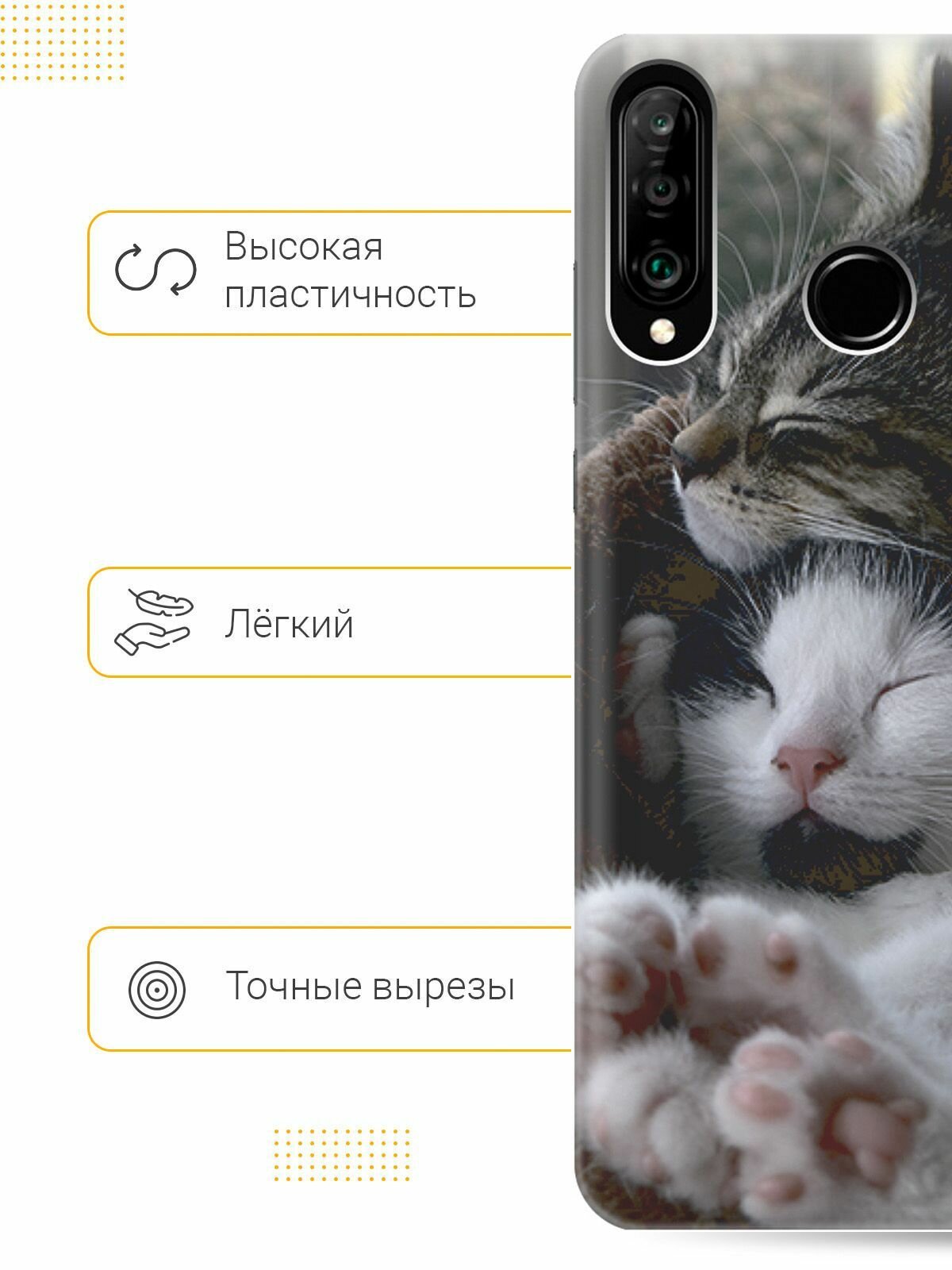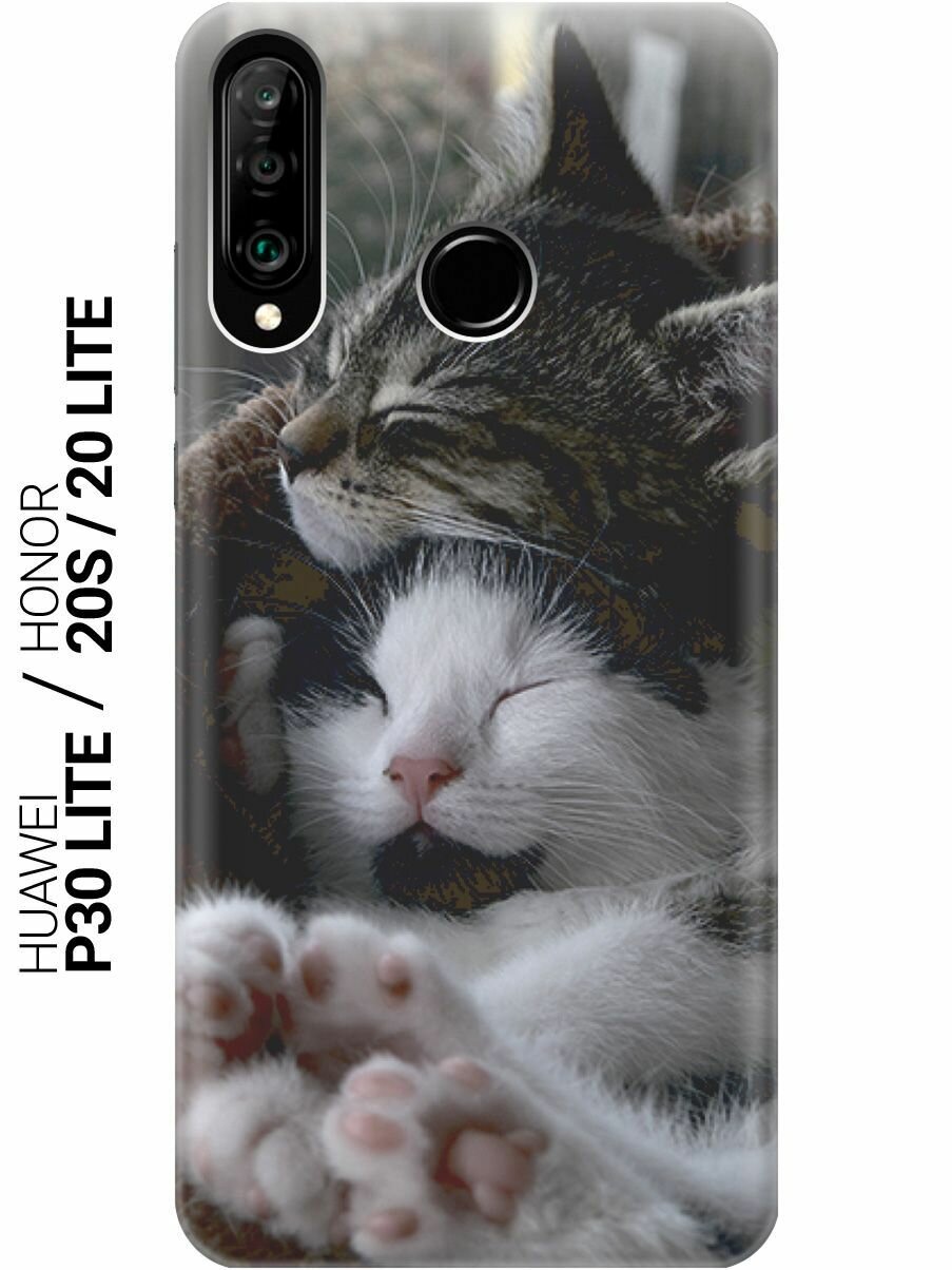 Купить Силиконовый чехол на Huawei P30 Lite, Honor 20 Lite, Honor 20s, Хуавей П30 Лайт, Хонор 20 Лайт, Хонор 20s с принтом "Отдыхающие котики"