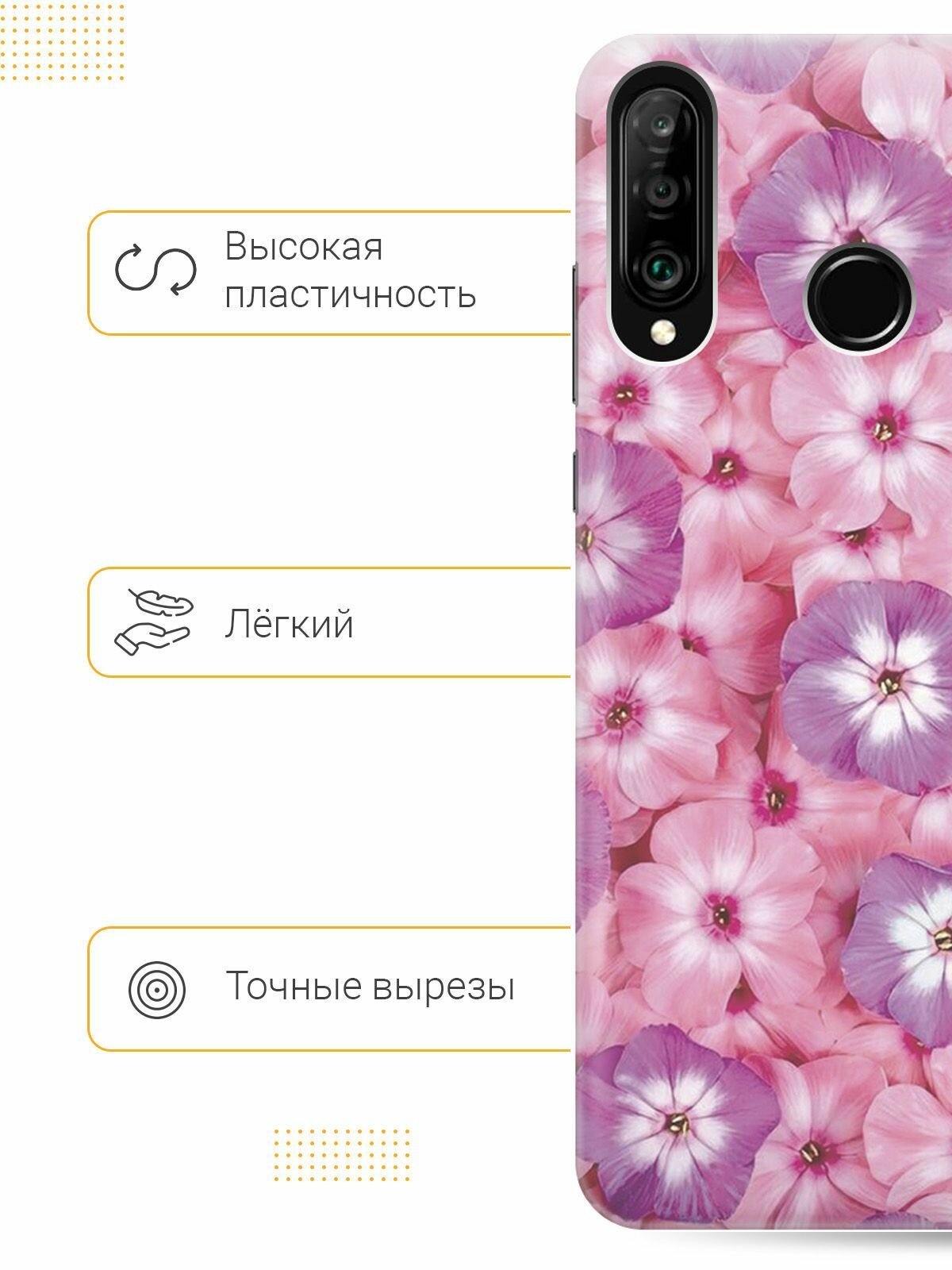 СохранитьСиликоновый чехол на Honor 20 Lite, 20s, Huawei P30 Lite, Хуавей П30 Лайт, Хонор 20 Лайт, 20s с принтом "Розовые и фиолетовые филаки" интересное: