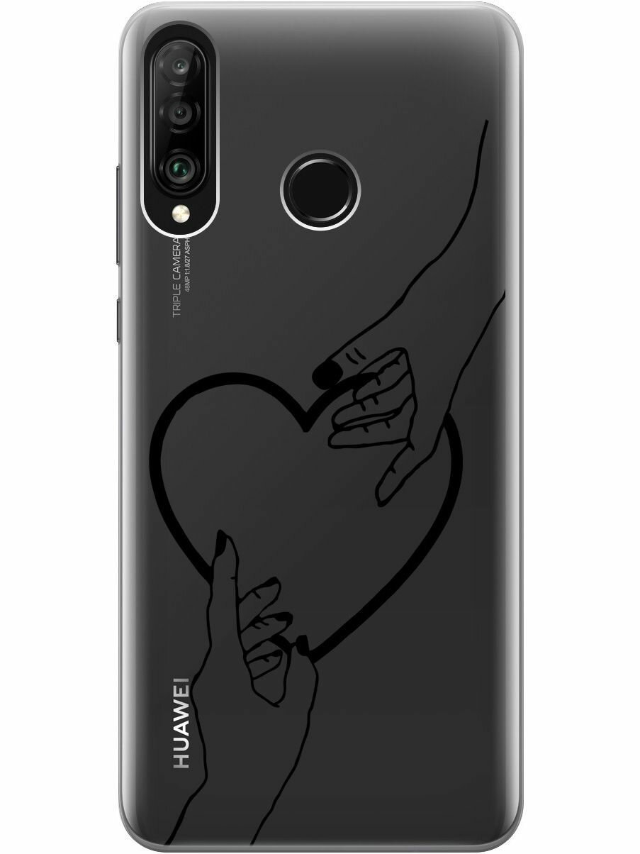 Силиконовый чехол на Honor 20 Lite, 20s, Huawei P30 Lite, Хуавей П30 Лайт, Хонор 20 Лайт, 20s с 3D принтом "Lovers Hands" прозрачный