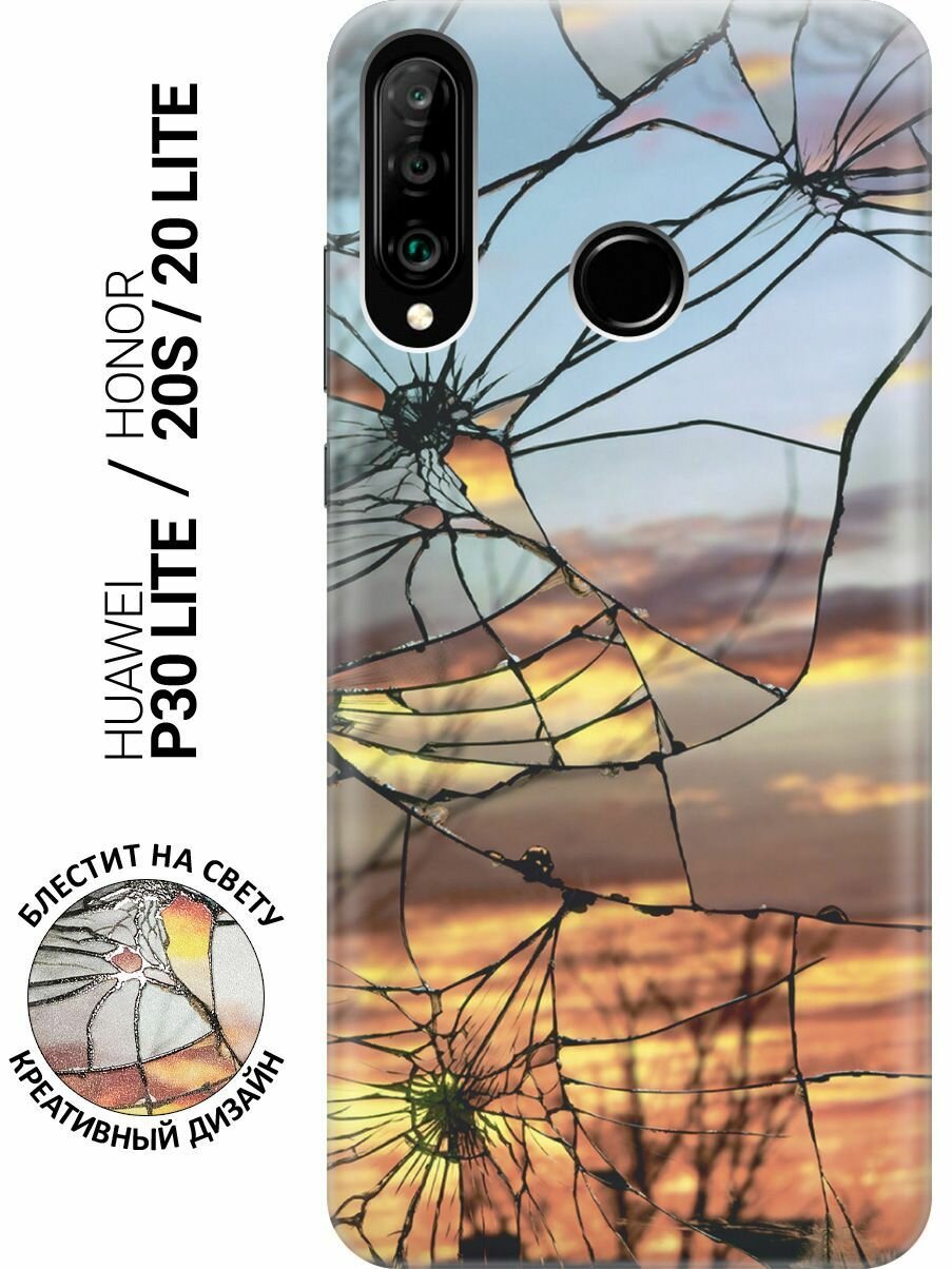 Силиконовый чехол на Huawei P30 Lite / Honor 20 Lite / Honor 20s / Хуавей П30 Лайт / Хонор 20 Лайт / Хонор 20s с эффектом блеска "Небо в трещинах"