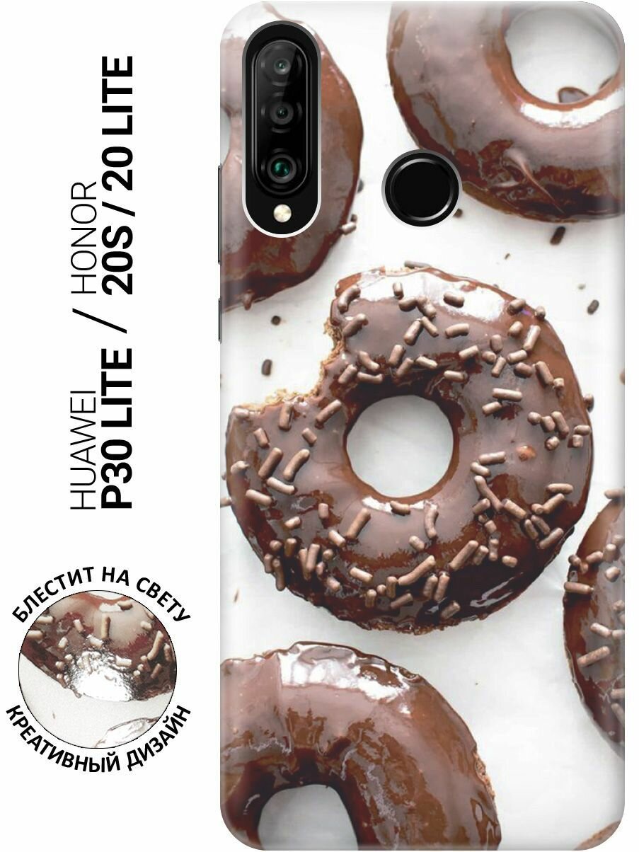 Купить Чехол на Huawei P30 Lite, Honor 20 Lite, Honor 20s, Хуавей П30 Лайт, Хонор 20 Лайт, Хонор 20s с эффектом блеска "Пончики в шоколадной глазури"