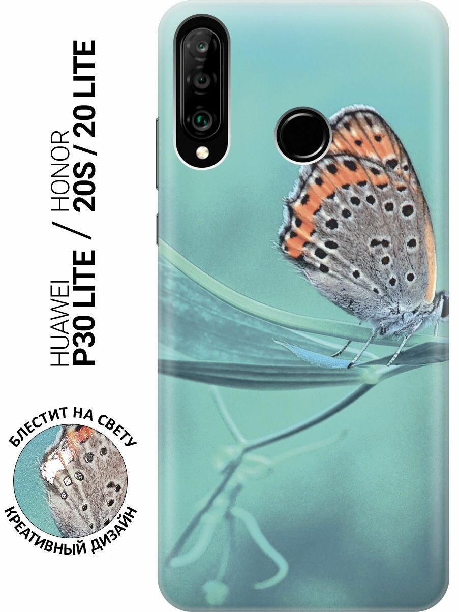 Силиконовый чехол на Huawei P30 Lite / Honor 20 Lite / Honor 20s / Хуавей П30 Лайт / Хонор 20 Лайт / Хонор 20s с эффектом блеска "Бабочка на листке"