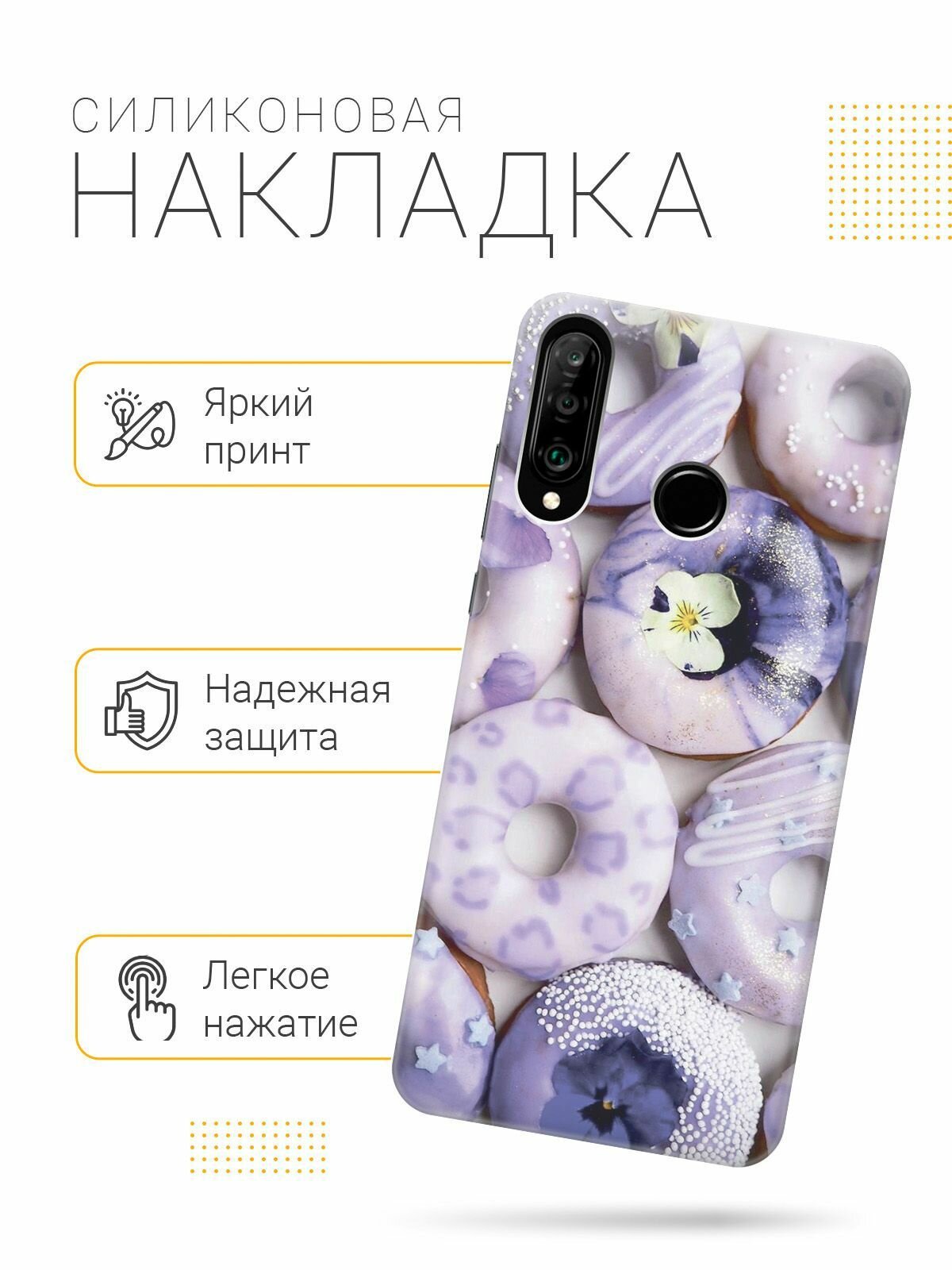 Купить Силиконовый чехол на Huawei P30 Lite, Honor 20 Lite, Honor 20s, Хуавей П30 Лайт, Хонор 20 Лайт, Хонор 20s с эффектом блеска "Лавандовые пончики"