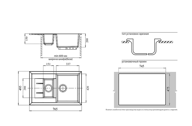 | Отзыв: | Если захотите ставить измельчитель бытовых отходов то он встанет только в маленькую чашу, если в большую то отверстие немного надо будет подточить |
