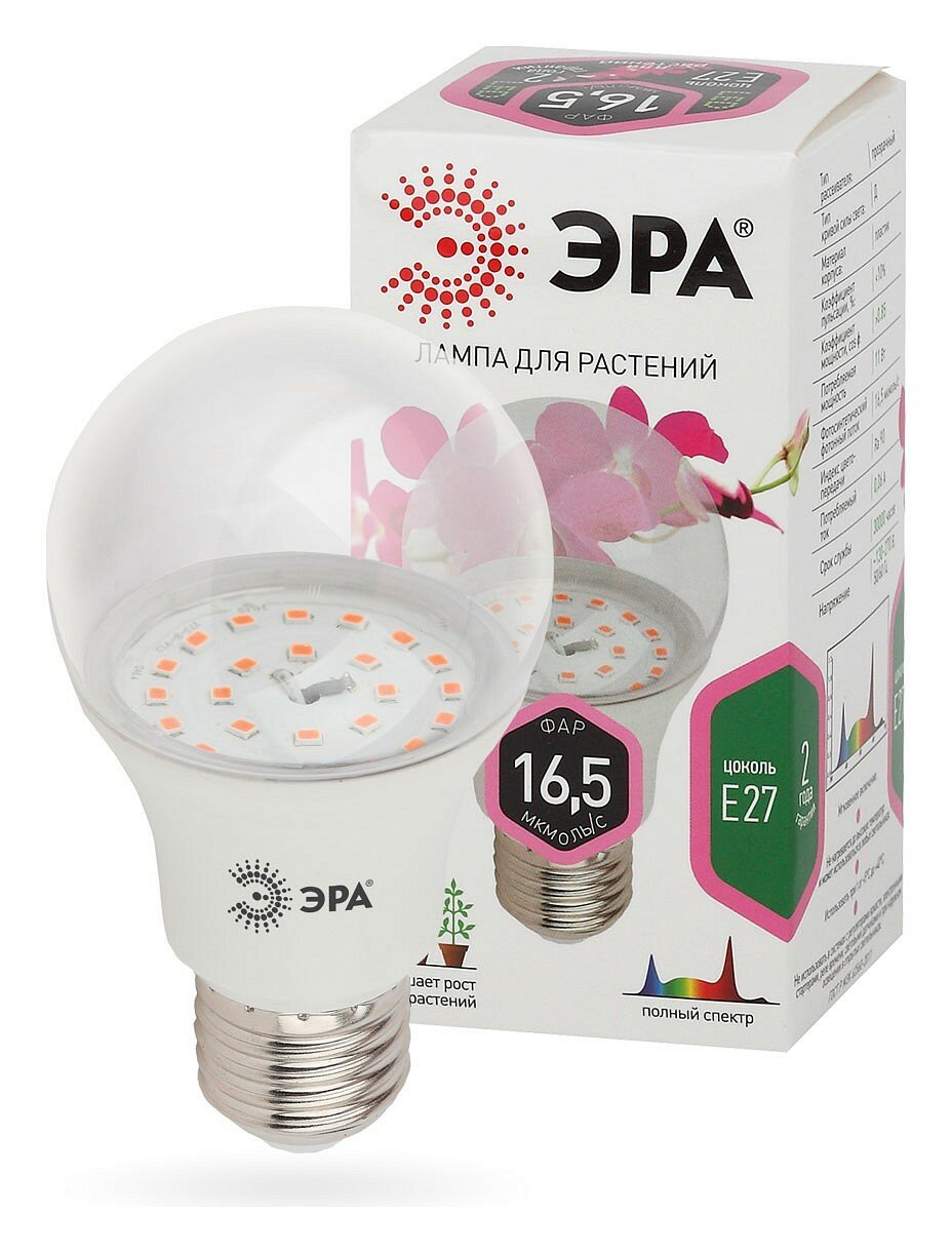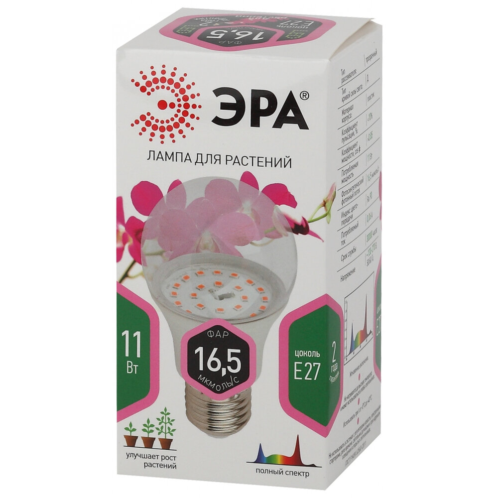 Лампа светодиодная для растений ЭРА Б0039172, E27, 11 Вт, 2150 К