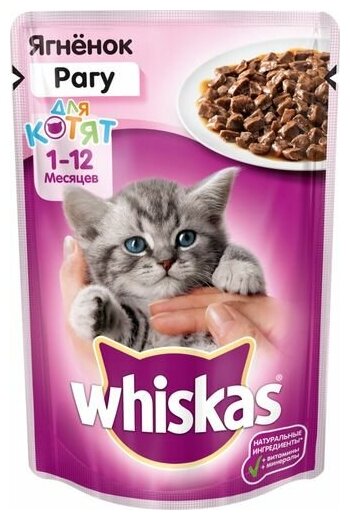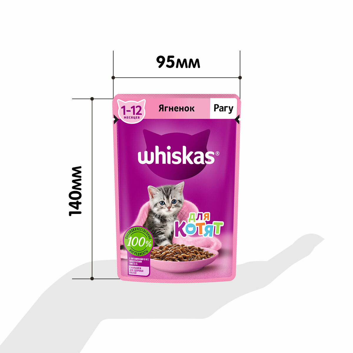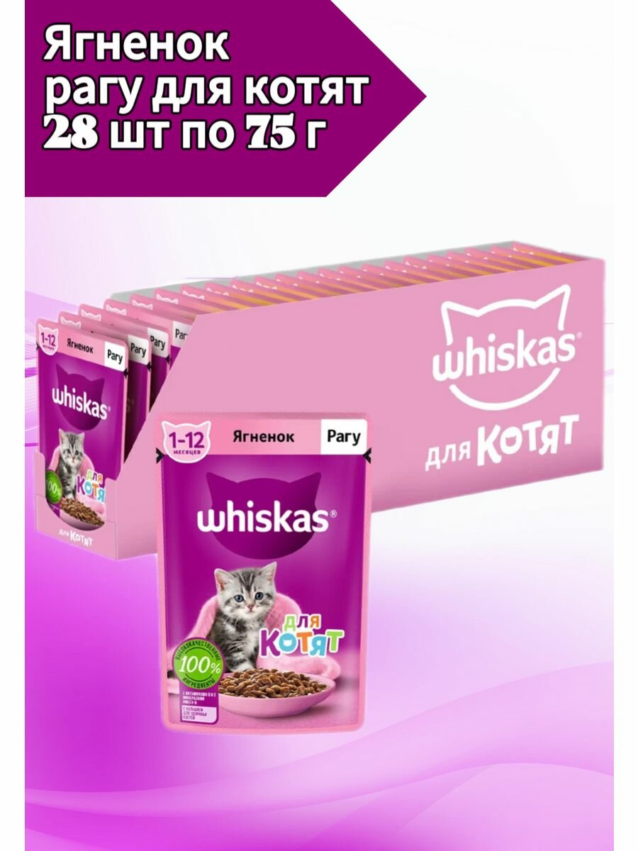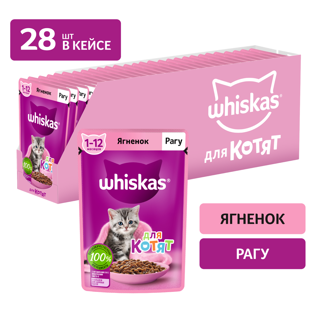 Whiskas влажный корм для котят от 1 до 12 месяцев, рагу с ягненком, в паучах - 75 г х 28 шт