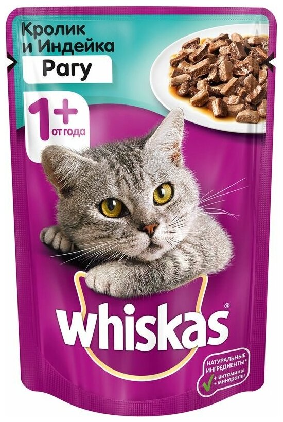 Влажный корм Whiskas для взрослых кошек, рагу с индейкой и кроликом, 75 г х 28 шт