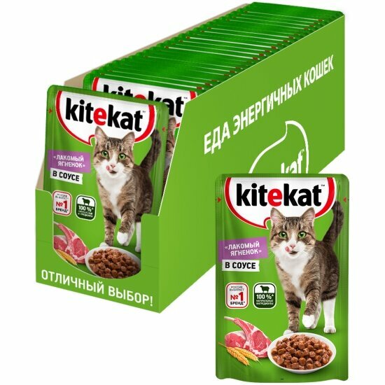 Корм влажный Kitekat полнорационный для взрослых кошек со вкусом ягненка в соусе «Лакомый ягненок», 28шт х 85г интересное: