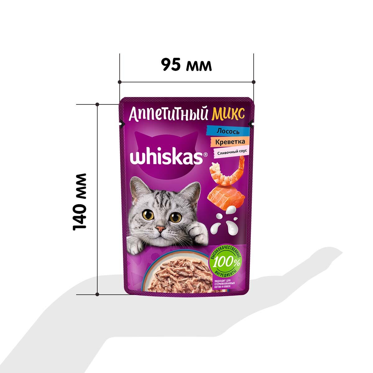 Whiskas "Аппетитный микс" пауч для кошек Креветки и лосось в сливочном соусе, 75 г. упаковка 28 шт
