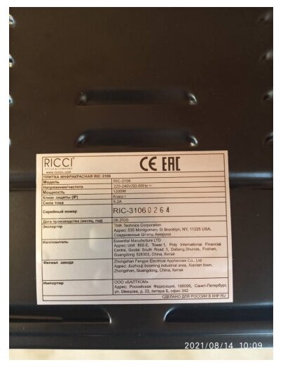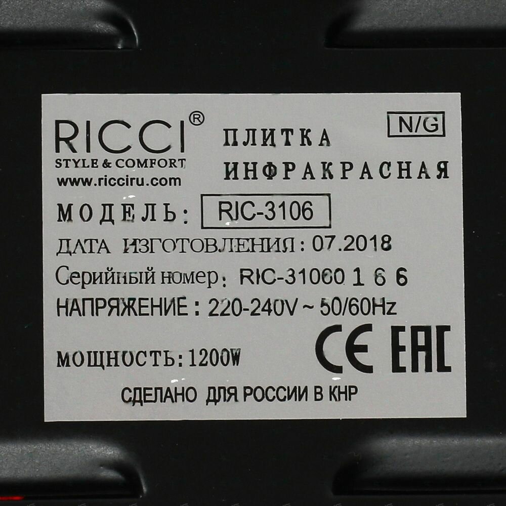 Инфракрасная плитка настольная 1 конфорка RIC-3106 RICCI интересное: