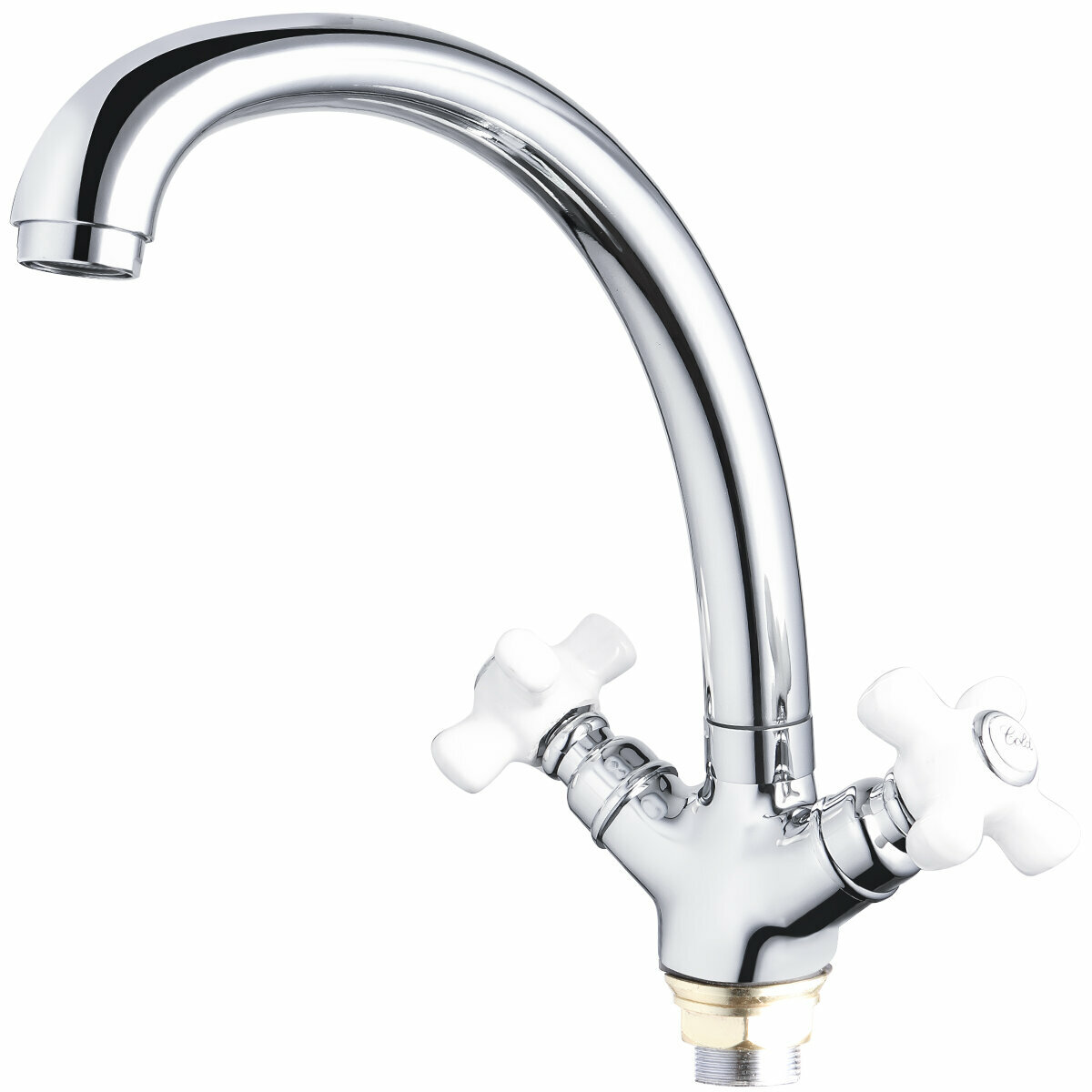 Смеситель для кухни / кран для мойки / смеситель для мойки / с керамической ручкой EKKO by Maxonor MN4218 с гайкой хром