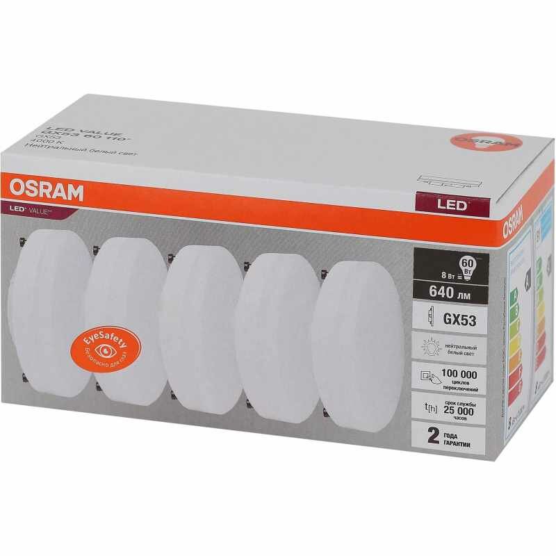 Лампочка светодиодная GX53 Osram, 8 Вт, 4000К, таблетка, 5 шт