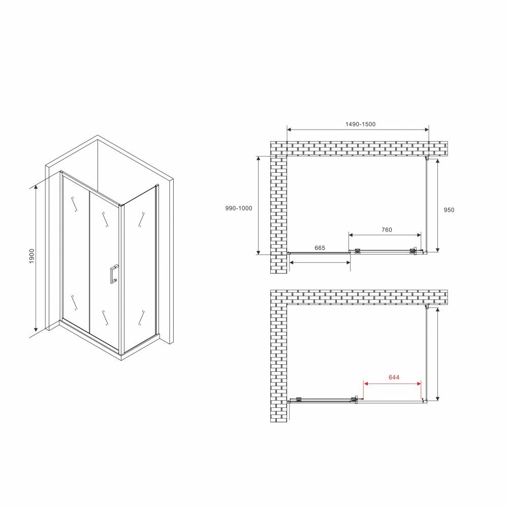Душевой уголок Abber Schwarzer Diamant 150x100 AG30150B5-S100B5 профиль Черный стекло прозрачное интересное: