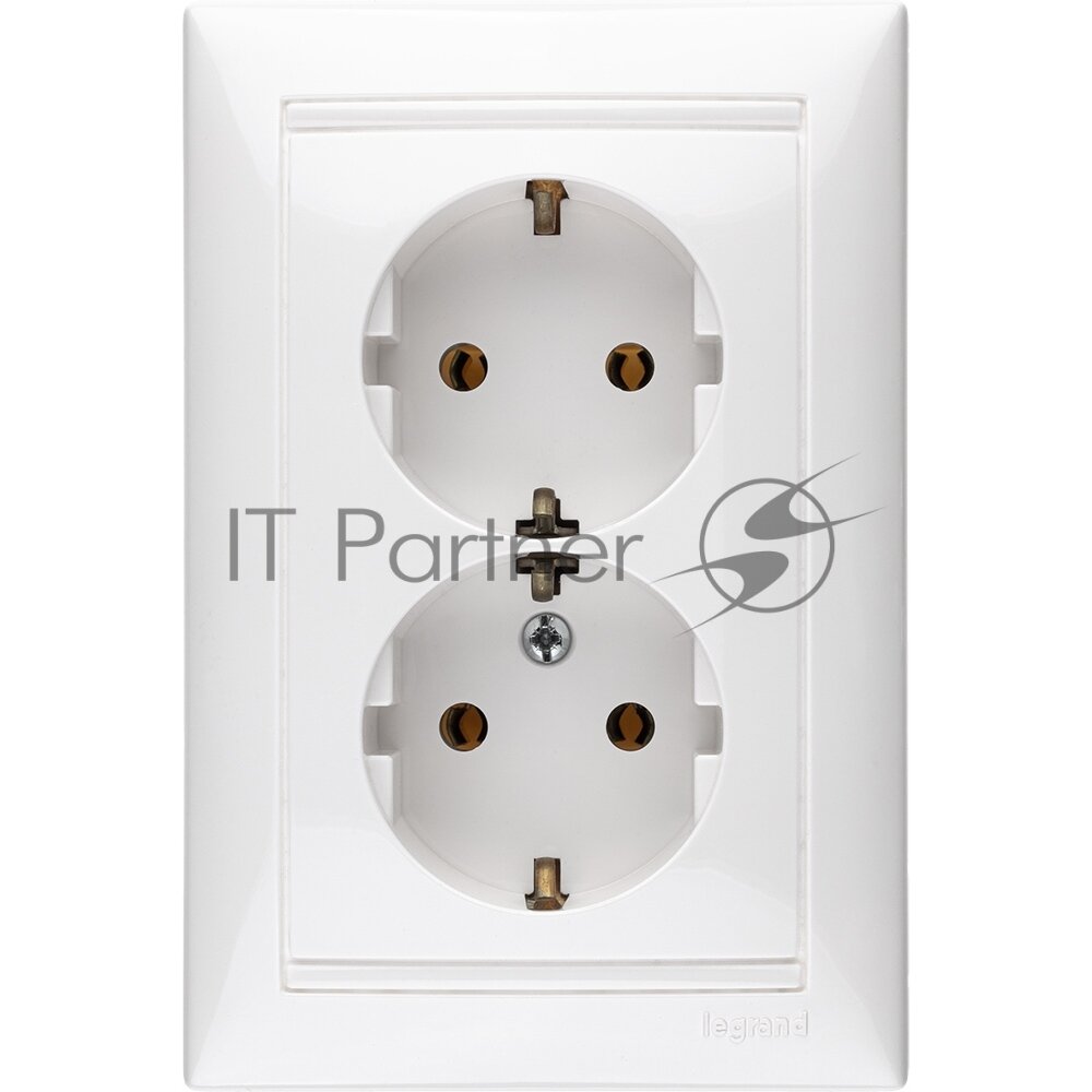 Розетка 2-м СП Valena 16А IP20 2х2P+E с заземл. немецк. стандарт на винтах в сборе бел. Leg, LEGRAND 774400 (1 шт.)
