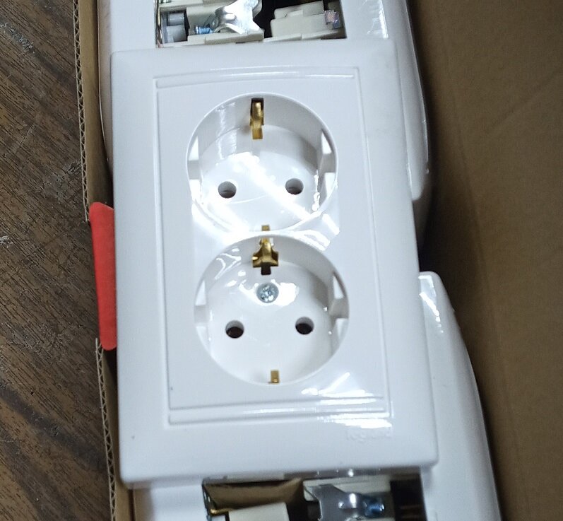| Отзыв: | В данной модели две точки подключения потребителей , но клеммы подключения не сдвоенные, а одинарные. Т.е. если к розетке подходят два двухжильных кабеля (при шлейфовом соединении), то один кабель подключается сверху, второй внизу. Может быть не совсем удобно, если ограничена длина проводов. Также надо учитывать, что рамка розетки не плоская и выступает примерно на сантиметр. |