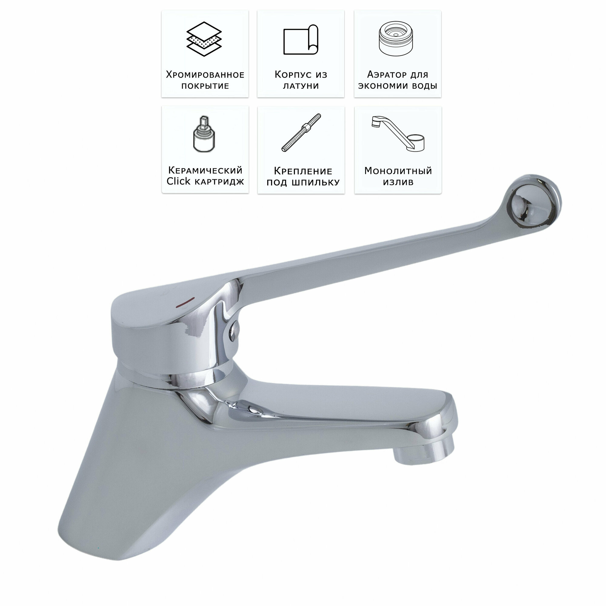 Bach / Смеситель Для раковины Монолитный излив Медицинская ручка / Код 12066 интересное: