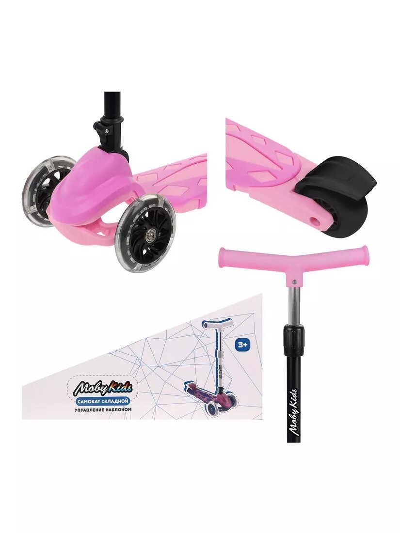 Самокат детский трехколесный складной, 120 мм, розовый Moby Kids