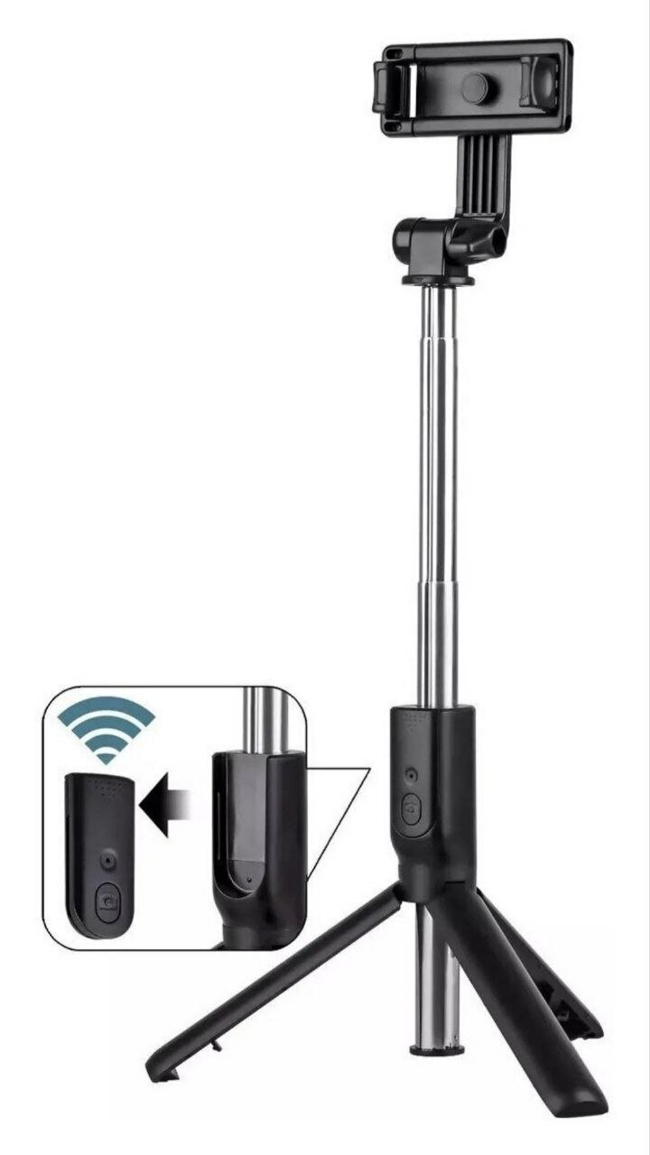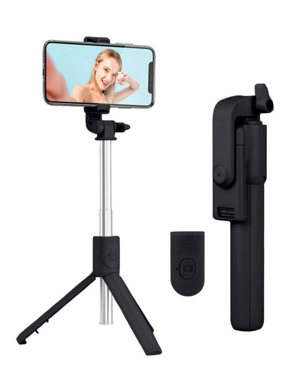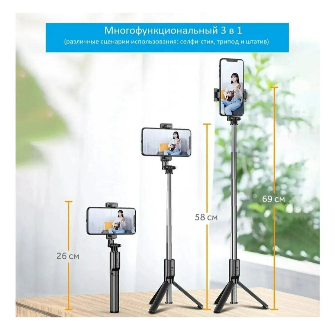 Монопод-трипод для селфи R1S, штатив трипод с регулируемым держателем для телефона и Bluetooth пультом, черный