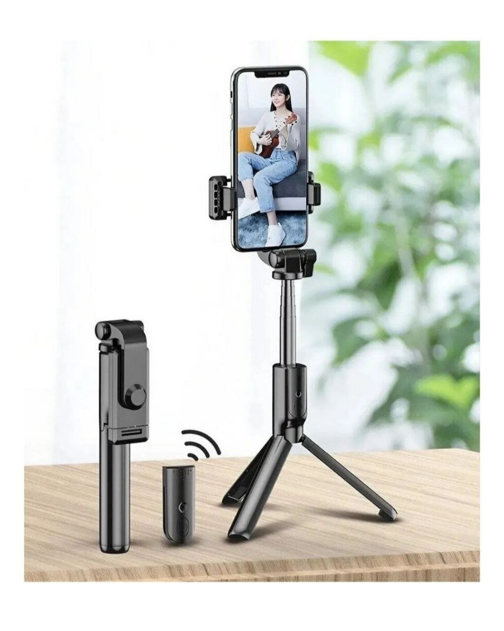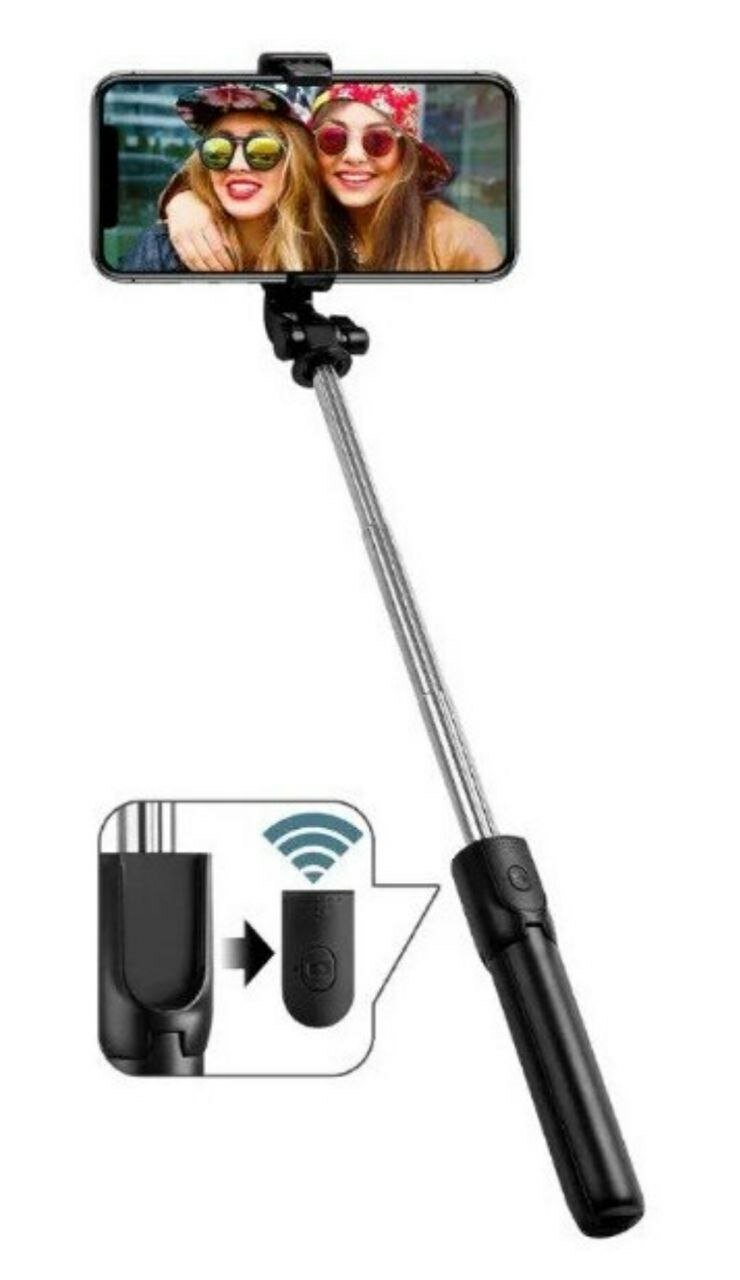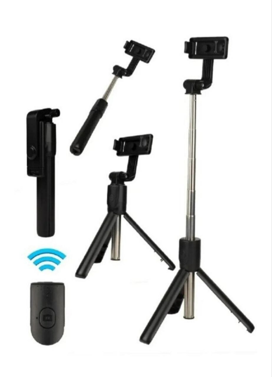 Монопод-трипод для селфи R1S, штатив трипод с регулируемым держателем для телефона и Bluetooth пультом, черный