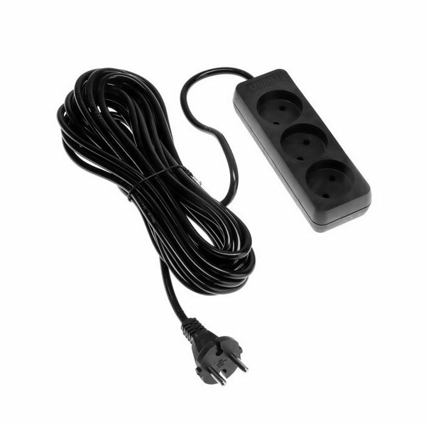 Удлинитель Uniel Standart, 3 розетки, 7 м, 10 А, 2500 Вт, без з/к, черный Uniel 7884134 .