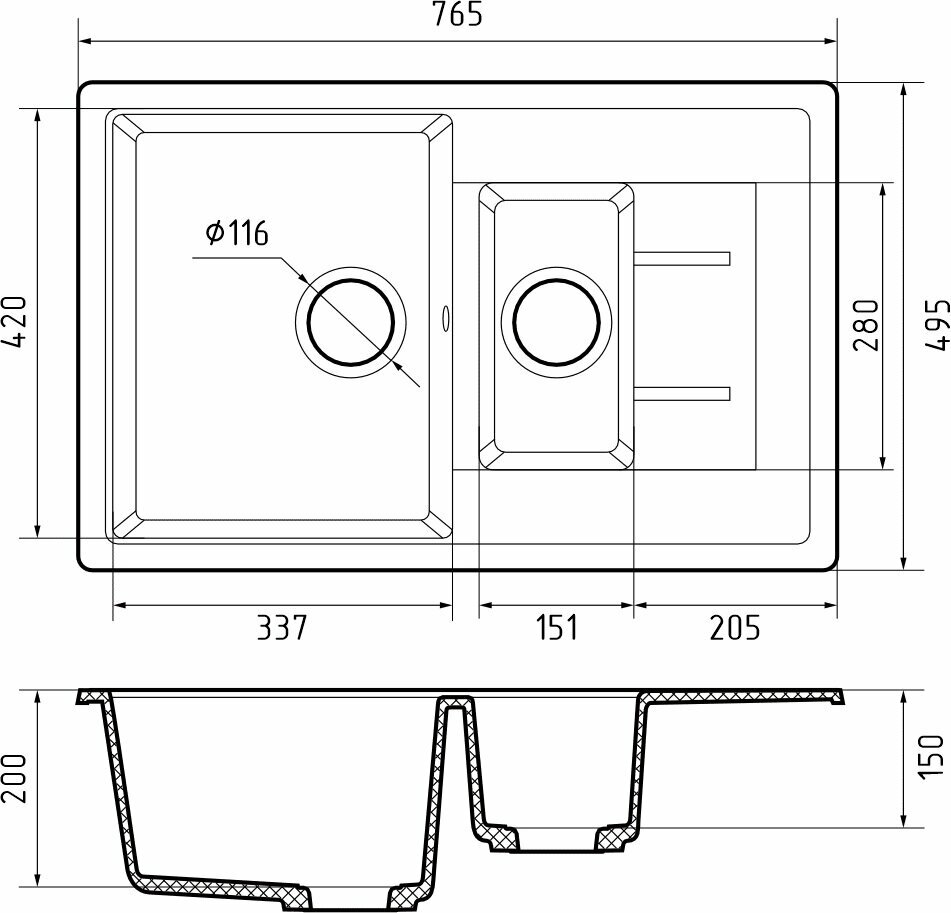 | Отзыв: | Отличная раковина, разводы от воды не видно практически. Сверлится легко. В малой чаше диаметр отверстия пришлось расточить, тк слив измельчителя не заходил.