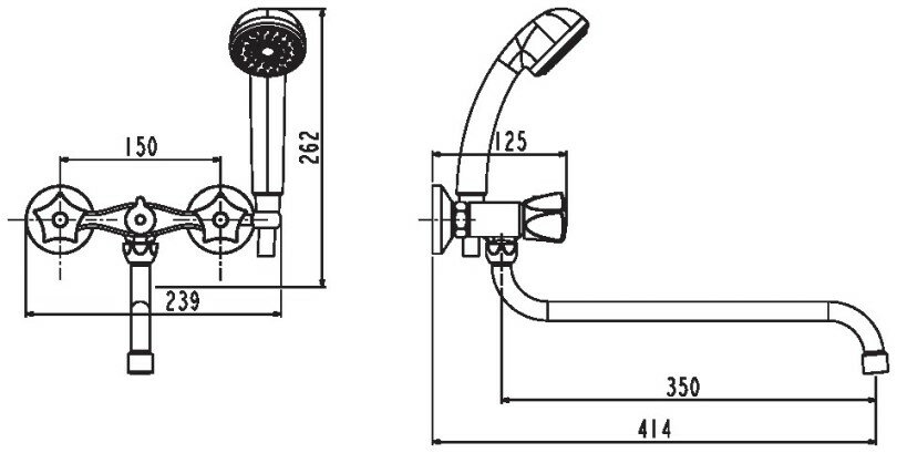 Смеситель для ванны/душа ESKO Moscow MS 31 настенный, двухзахв., длинный излив, душ. гарнитур, хром