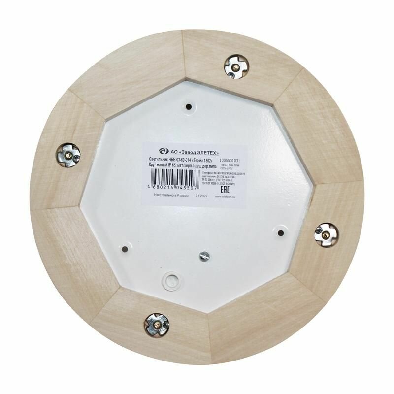 Светильник НББ 03-60-014 "Терма 1302" 1х60Вт E27 IP65 круглый малый матов./корпус с решеткой дерево липа (инд. упак.) Элетех элетех 1005501031 (1 шт.)