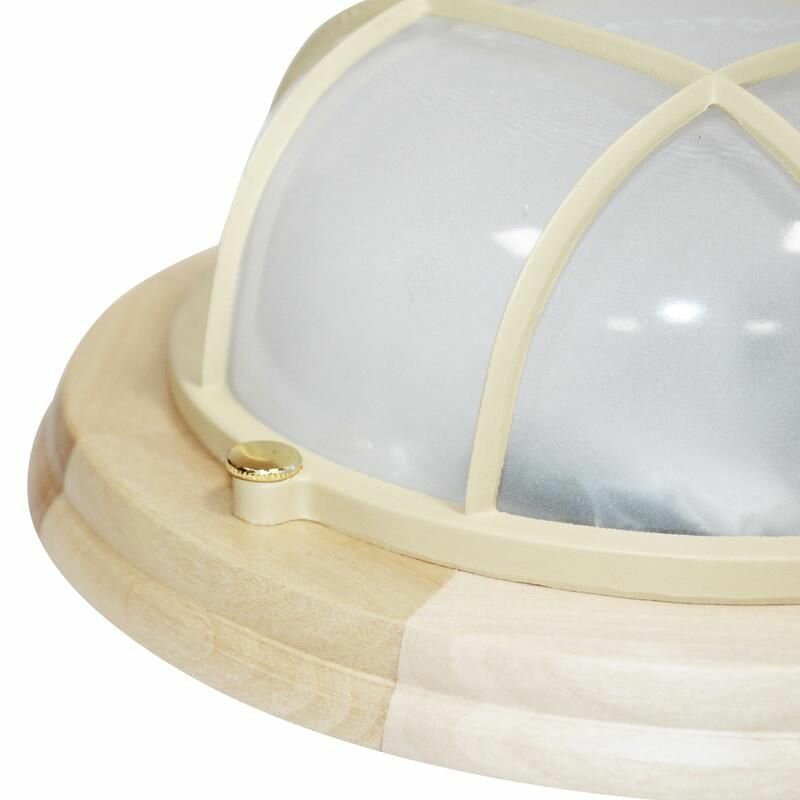 Светильник "Терма 1302" Круг малый IP65 матовый/корп. с решеткой дерево липа