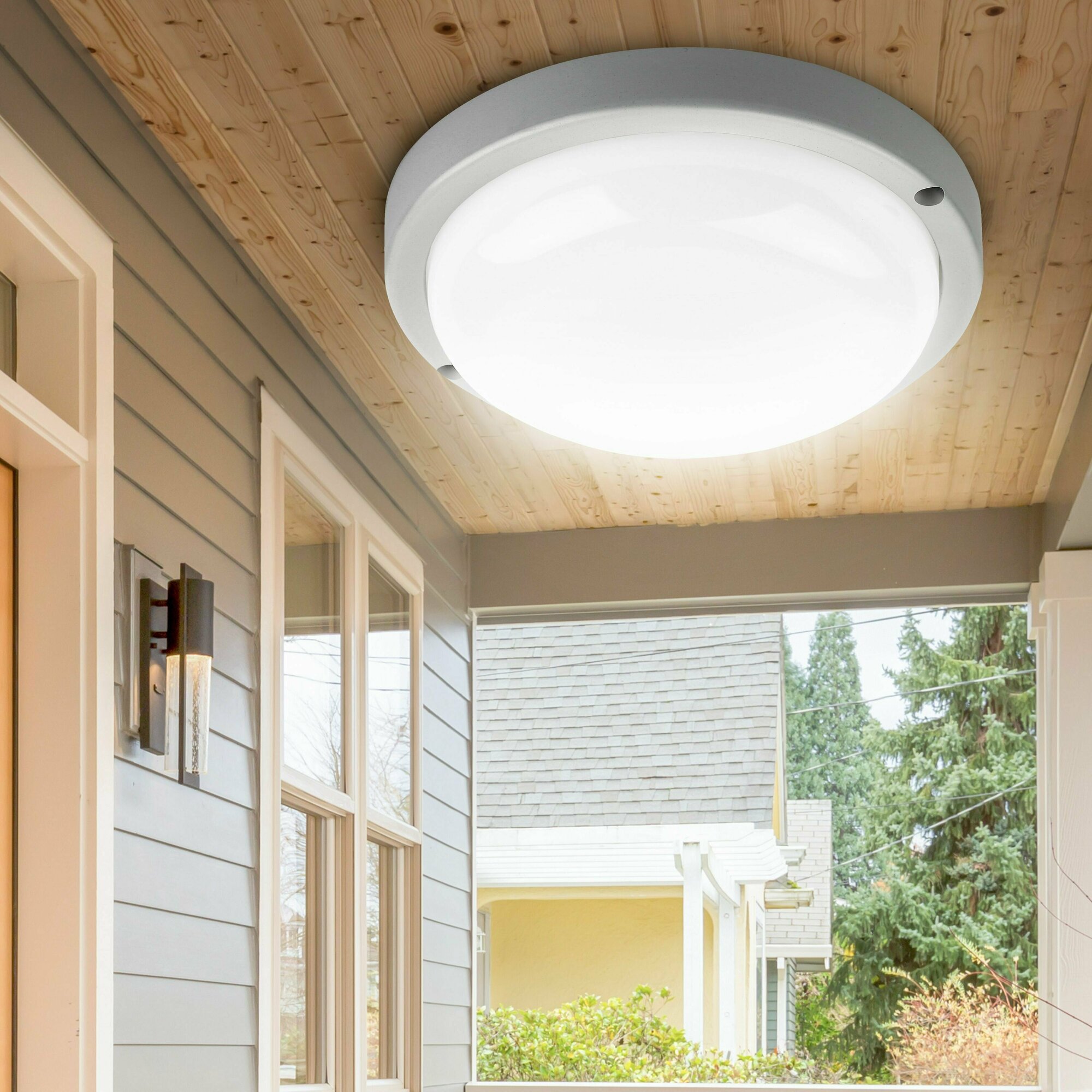 Настенно-потолочный светильник светодиодный уличный ЭРА SPB-201-1-65K-015 влагозащищенный IP65 ЖКХ с датчиком движения 6500K 1425 Лм 15 Вт D175мм