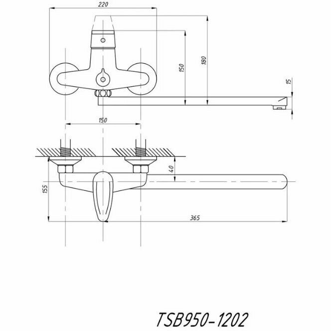 Смеситель для ванны с душем TSARSBERG TSB-950-1202 тип см-вуорншла
