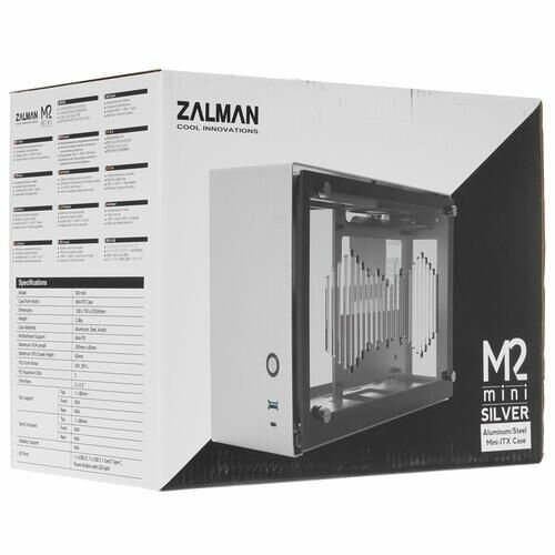 Корпус ZALMAN M2 MINI, MITX, ALUMINIUM, SILVER, WINDOWx2, RISER CARD, 2x3.5", 3x2.5", 1xUSB3.0, 1xUSB3.1 TYPE-C, TOP 1x80mm (M2 mini (Silver))