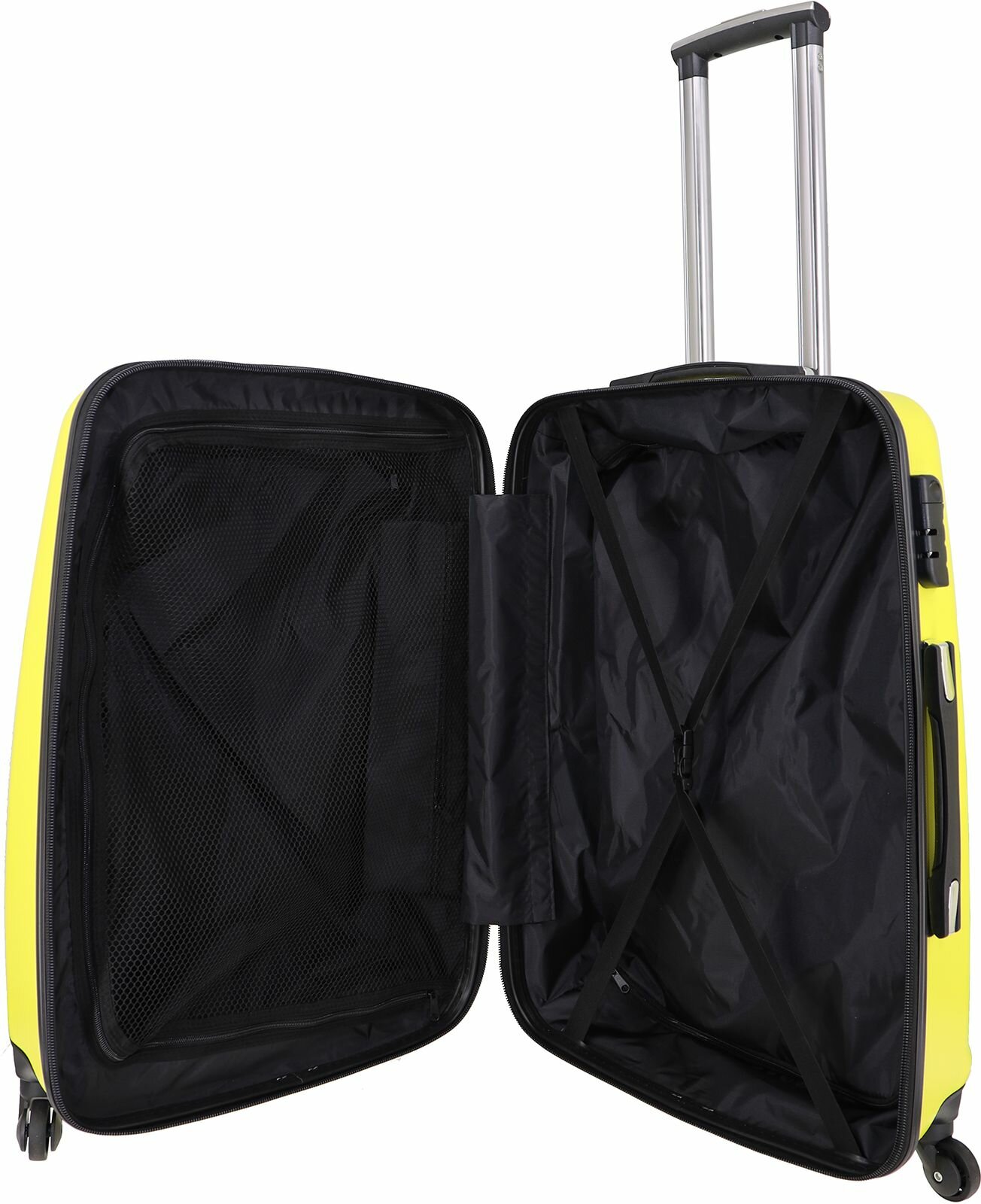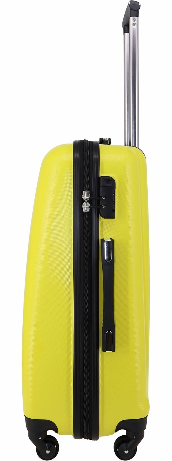 Купить Чемодан Рион+ (RION+) R418, Пластик, L (70 см), 78 литра, 4 колеса, усиленный пластик, желтый