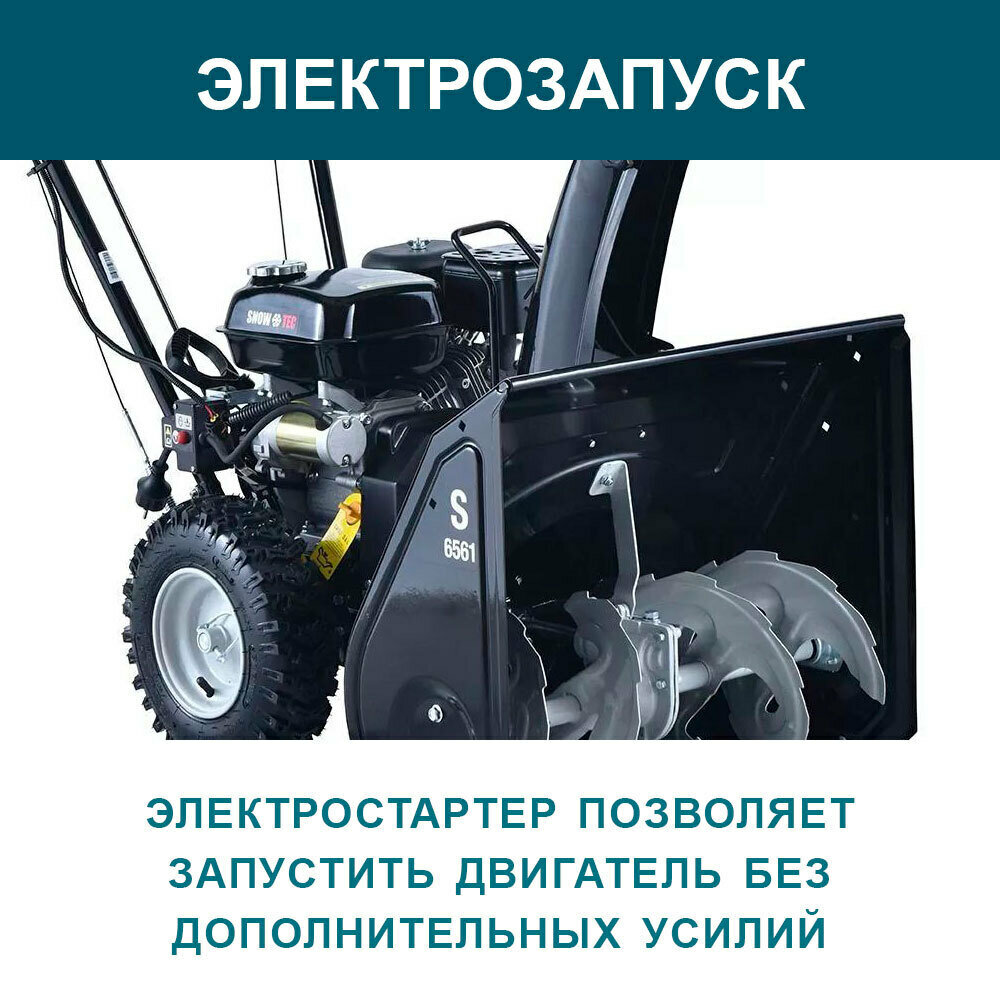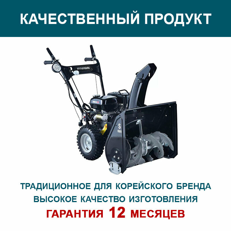 Бензиновый снегоуборщик Hyundai S6561 (электрозапуск двигателя, 6.5 л. с, захват снега 61/51 см), снегоуборочная машина