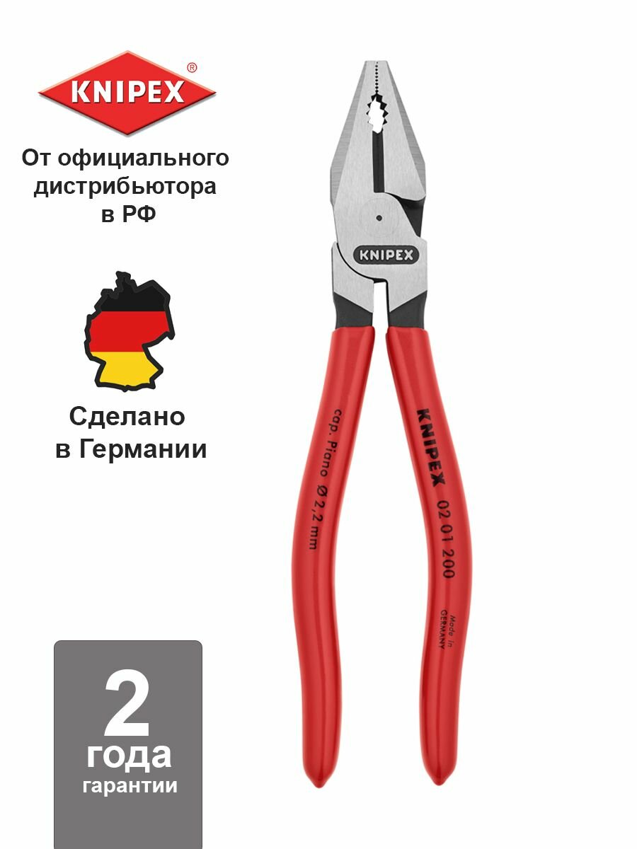 Пассатижи/плоскогубцы KNIPEX комбинированные особой мощности, 200 мм, фосфатированные, обливные ручки KN-0201200