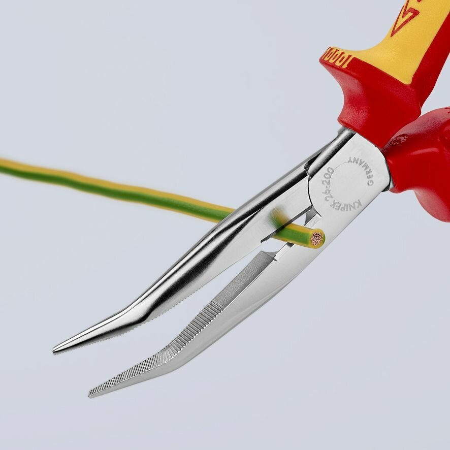 Плоские круглогубцы 200 мм с режущими кромками VDE KNIPEX, KN-2626200, загнутые
